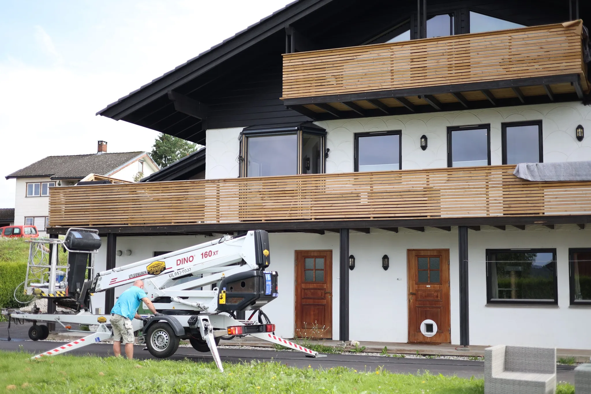 Vi bruker topp moderne utstyr, som lift og malesprøyte, for å jobbe raskt og effektivt, selv på utfordrende steder. Dette sparer både tid og kostnader for deg!
